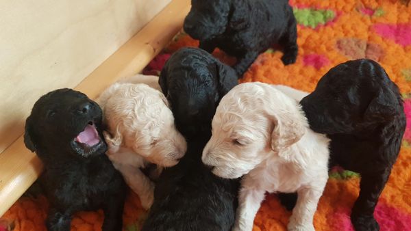 Puppies born 25.2. - Two boys and one girl, all black. Emma and Aron are proud parents.